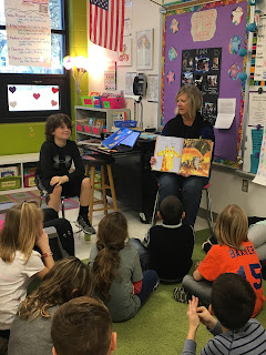 Thanks to Drew's neighbor and friend, Julie, for coming to read to us today! She read two funny stories with great messages. She added in some funny stories about Drew as she read too! :) The students loved the book "Giraffe's Can't Dance", and they promise they will be good crickets! The second book, "Camping Day" was also a great book. I think that Drew is ready to go camping now! Thanks again for coming today, even when you weren't feeling the best, to be our Mystery Reader!